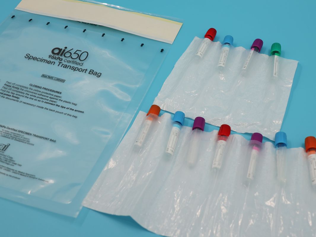 | Nome del prodotto | Sacche di trasporto di sicurezza a 95kPa per campioni di materiale biologico con un manicotto a 7 tasche assorbenti scanalate |