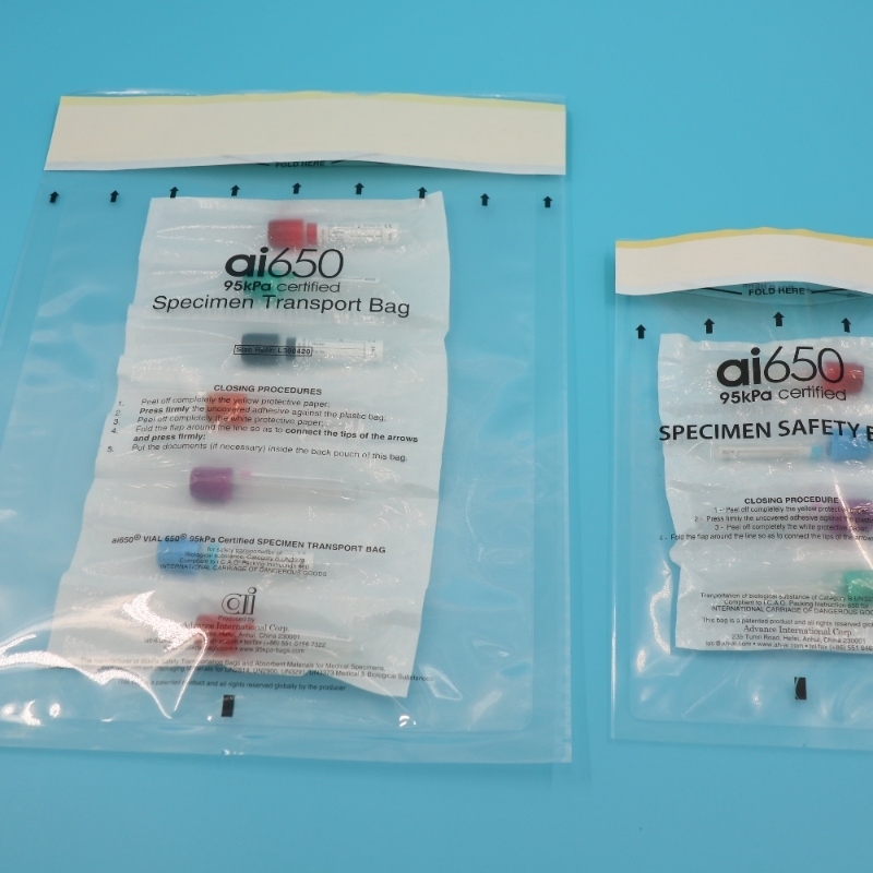 Sacchetti per campioni a tenuta stagna da 95KPA con tampone assorbente, sacchetti per materiali biologici pericolosi certificati AI650